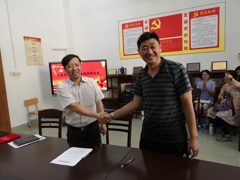 工会党支部书记丁纯杰同志介绍了结对共建活动的背景和意义,介绍了工会党支部建设情况。体育部党总支书记宋卫同志对体育部党总支基本情况做了介绍。双方就如何结合党建要求和部门实际深入推进结对共建工作进行了深入探讨,并签订了《广东技术师范大学机关党委党支部与二级党组织结对共建协议书》,以此拉开了工会党支部与体育部党总支党建工作帷幕。在未来两年的时间里,双方将朝着“共建、共学、共谋、共育、共享”的目标扎实开展共建工作。