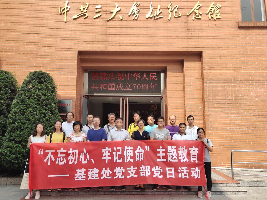 10月11日上午,基建处全体党员干部到广州市越秀区恤孤院路中共三大会址纪念馆开展“不忘初心、牢记使命”主题党日活动,参观中共三大会址和历史陈列,回忆峥嵘岁月,传承革命精神,重温入党誓词。