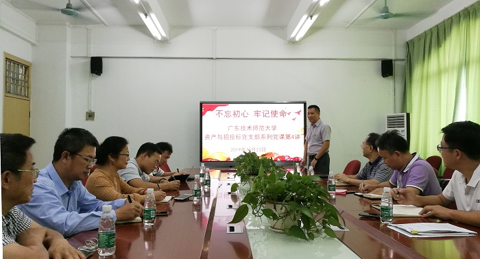 10月23日下午,资产与招投标党支部在东校区马克思主义学院会议室1311开展“不忘初心、牢记使命”主题教育系列党课第4讲。招投标中心主任腾立国同志主讲主题是“学习贯彻《中国共产党问责条例》,深入推进全面从严治党”。支部全部党员同志参加活动。