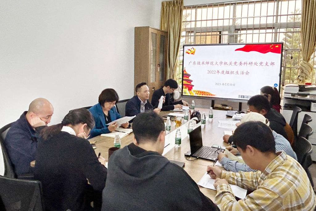为深入学习贯彻习近平新时代中国特色社会主义思想,学习贯彻党的二十大精神,根据学校《关于做好2022年度二级单位领导班子党员领导干部民主生活会的通知》精神,2月10日,科研处党支部召开了2022年度组织生活会。校长戴青云同志到会指导,科研处党支部书记唐宇主持会议,全体党员参会。